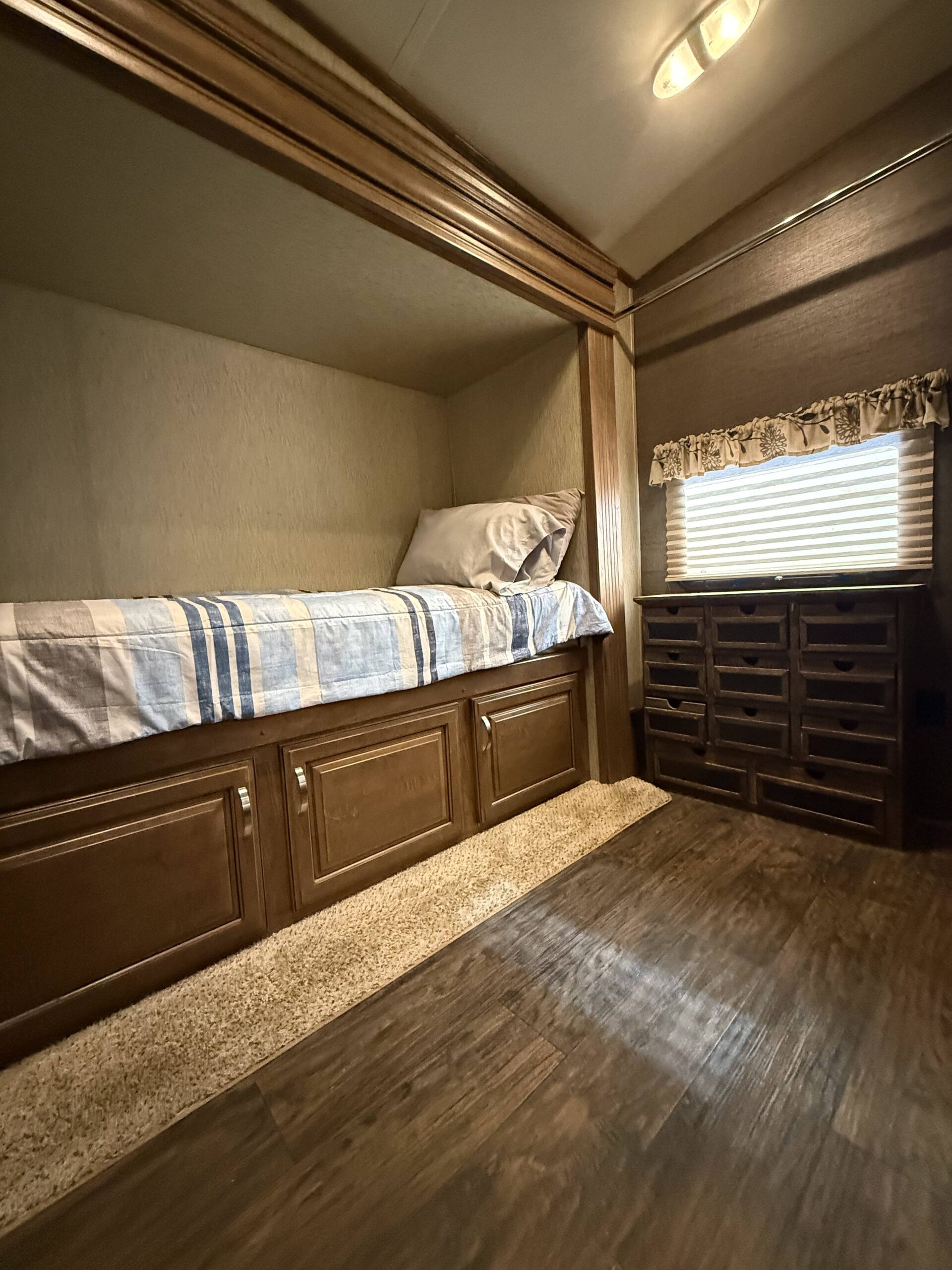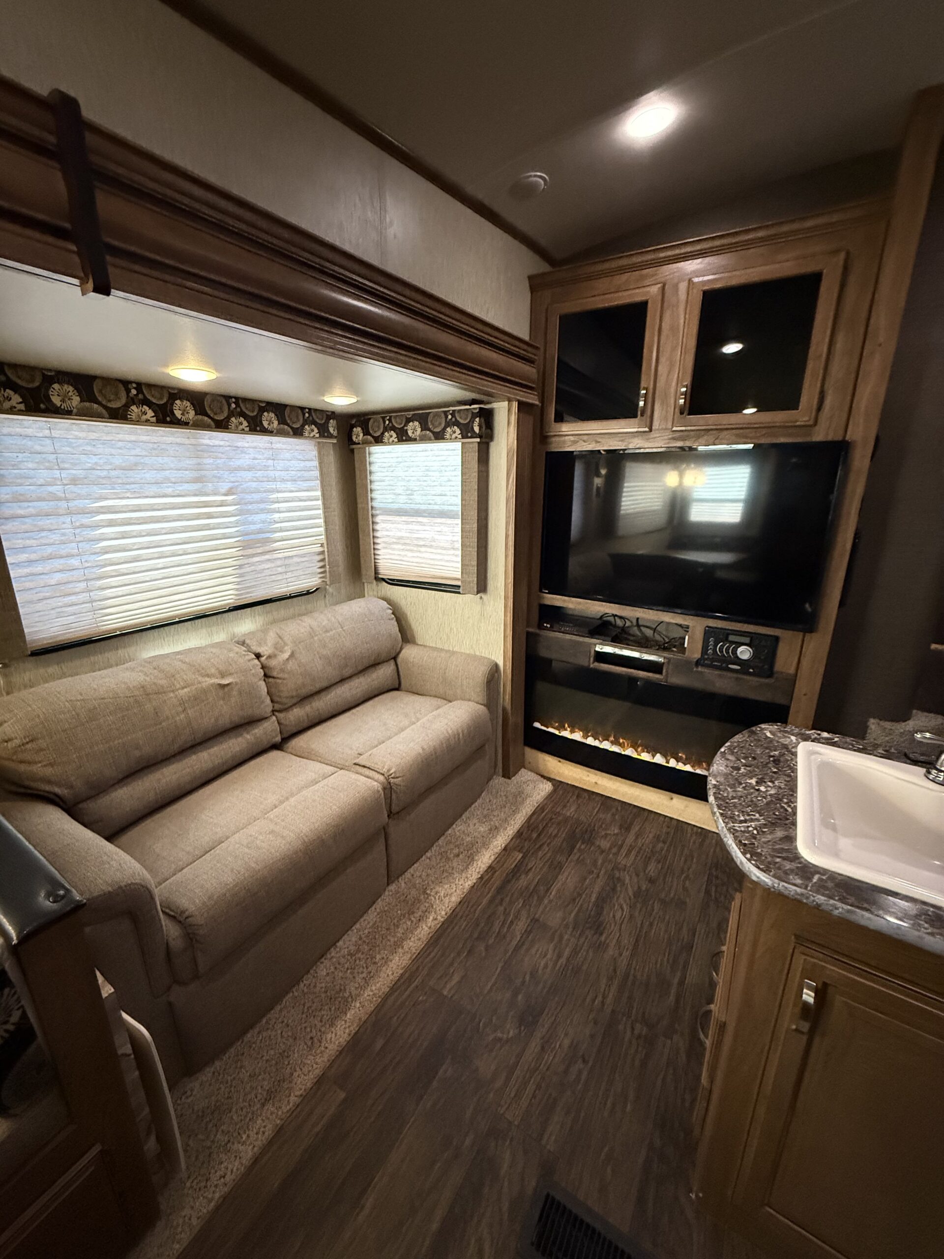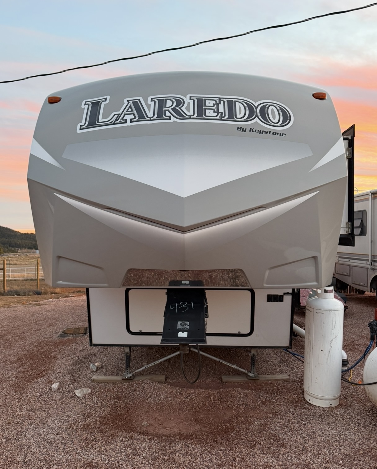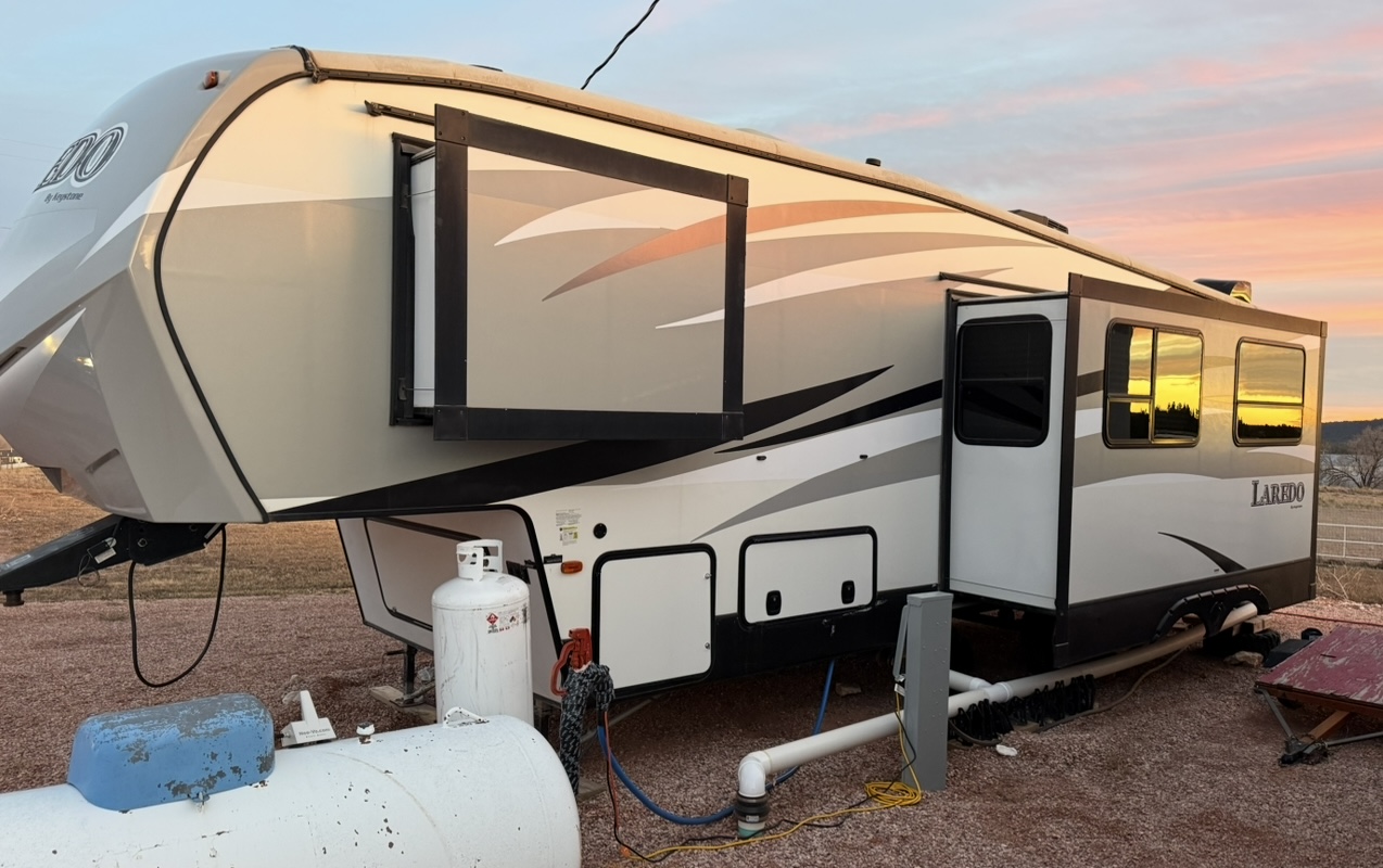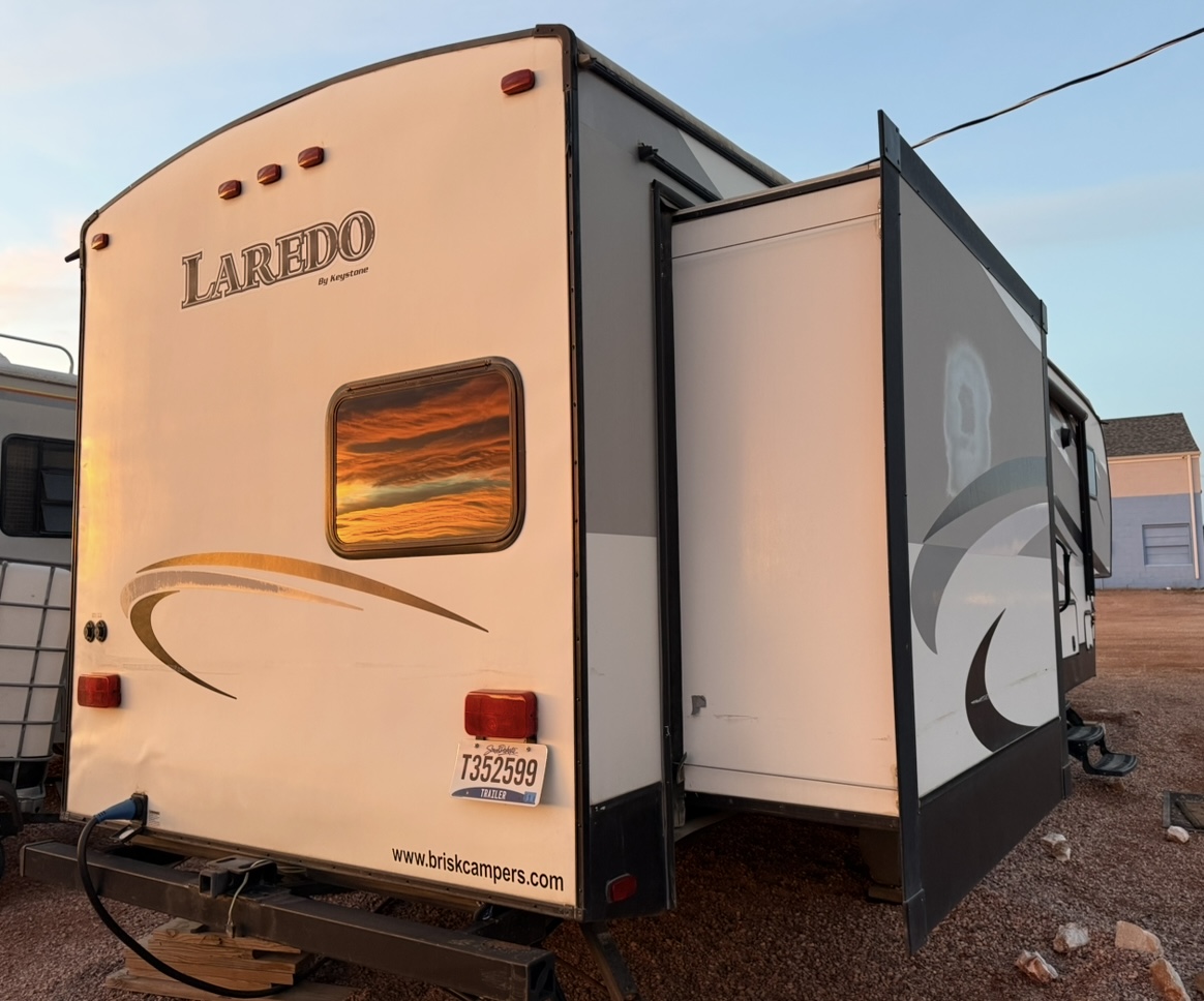 Well maintained 33ft 5th-wheel with a spacious bunkhouse. Family focused, 2015 Keystone Laredo 293 SBH, triple slide outs, super light, 2 bathrooms and 1 spacious shower. Private master with ample space and flatscreen TV. Living/dining combo with an oversized flatscreen TV and custom fireplace. Spacious kitchen with a large sink, pull out sofa sleeper, etc. Call or stop in today for more details.